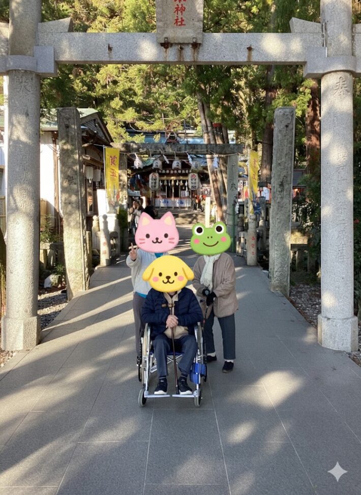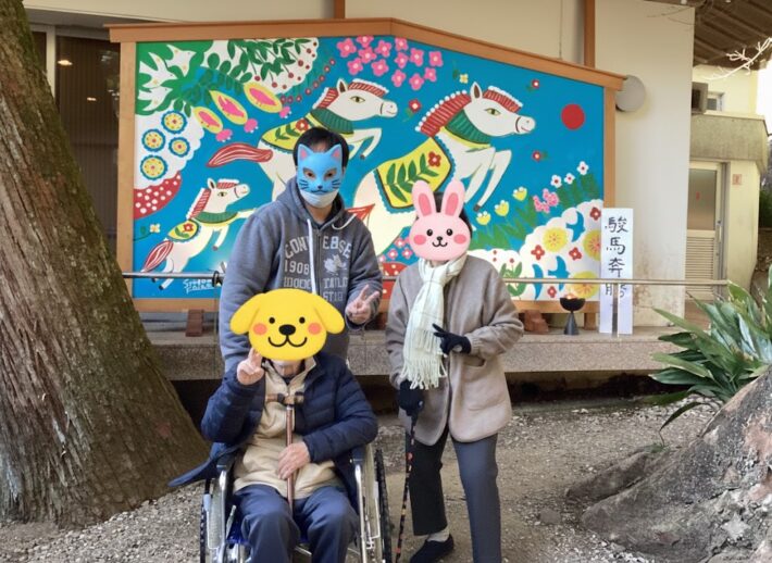 サテライトいの利用者様と職員で、椙本神社へ初詣に行きました。