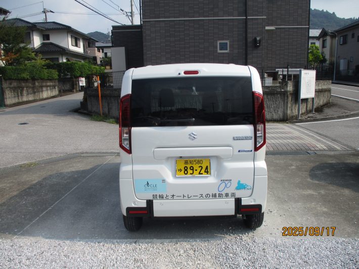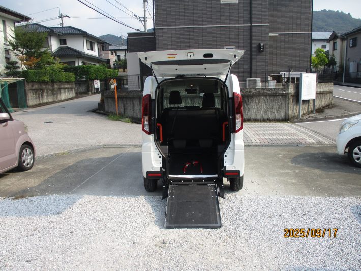 福祉車両は車いす仕様スロープ式軽自動車(スズキ スペーシア)です。