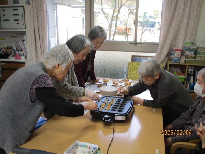 2月のおやつクラブは1階【ベビーカステラ】2・3階【アレンジクラッカー】を作りました!🍕🍰