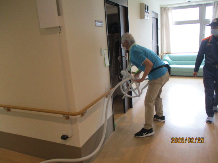消防署立ち合いのもと、職員2名が主体となって行いました。👩🏻‍🚒👨🏻‍🚒🧑🏻‍🚒