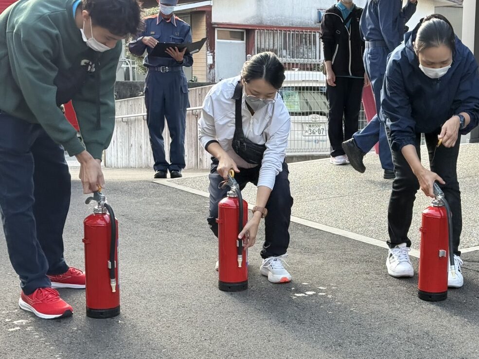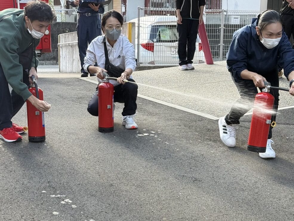 水消火器にて消火訓練をし、仁淀消防の方から総評をいただきました✨