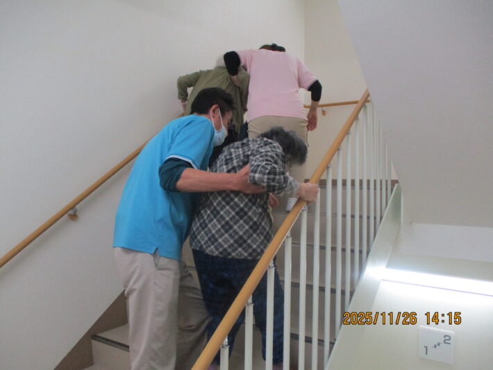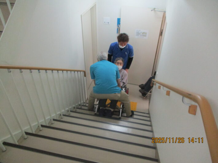 🛗1F入居者様はエレベーターが使えない🚫という状況下での避難訓練の為、階段で!!