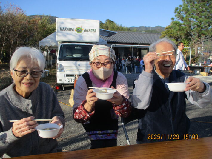 屋外の会場では、地域の皆様手作りの波川鍋の振る舞いもあり、私たちも頂きました!
